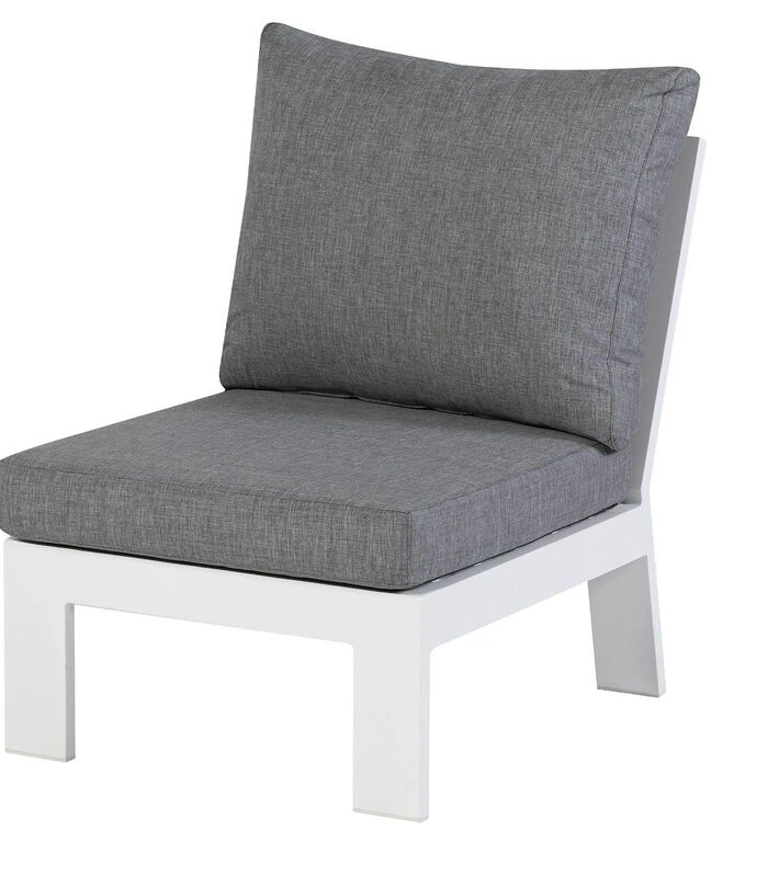 Te weinig plek? Het middenelement Valerie middenelement kun je als loungestoel gebruiken, maar kun je ook toevoegen aan de hoeklounge. Het middenelement heeft een frame van aluminium en is voorzien van heerlijke comfortabele kussens. Deze kussens hebben een buitenstof van Nanotex® en een vulling van Fast dry foam. Deze foam is waterdoorlatend, schimmel– en rotvrij.