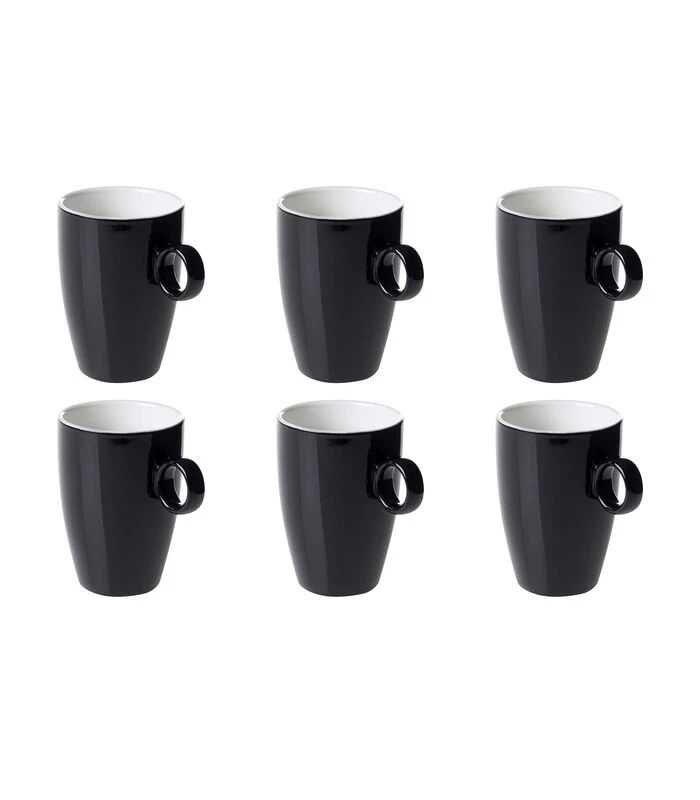 Serveer je koffie of andere warme drank eens op een andere manier met deze prachtige zwarte Bart Colors Café bekers van Maastricht Porselein. Het kleine ronde oor zorgt ervoor dat de bekers stevig in je hand liggen. Daarnaast zijn de bekers nestbaar. Het hoogwaardige porselein is kleurvast en zal niet vervagen na veelvuldig reinigen in de vaatwasmachine. Bestand tegen stoten en met een inhoudsmaat van 23 cl zijn dit dé perfecte bekers! Deze set bestaat uit 6 zwarte bekers met een inhoudsmaat van 23 cl.