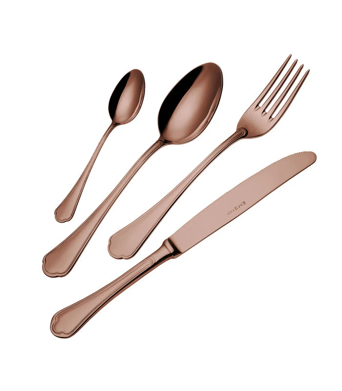 Deze EME Domus Chocolate bestekset is ontwikkeld voor de liefhebber van gekleurd bestek van Italiaanse hoogwaardige kwaliteit en een eigentijdse afwerking. Het gepolijste oppervlak van het bestek wordt bewerkt met speciale fijnkorrelige schuurpasta’s, waardoor het bestek zijn prachtige hoogglans krijgt.
