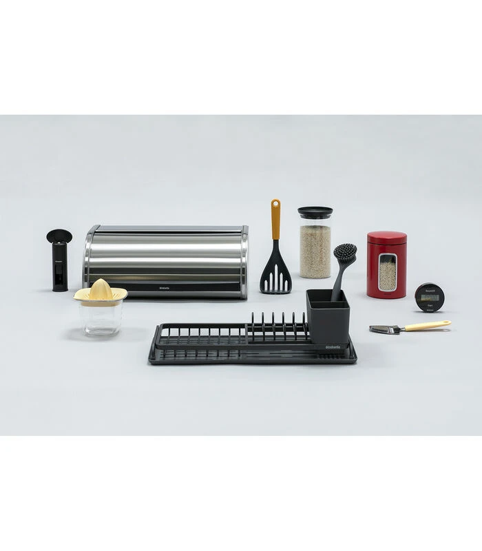 Houd je brood startklaar en vers in de Brabantia Broodtrommel met Schuifdeksel. Deze beauty van een broodtrommel heeft plek voor maximaal twee broden, of ander lekkers, en heeft een grote handgreep om ‘m makkelijk te openen. Ruimtebesparend is hij ook: het deksel verdwijnt in de trommel en je kunt je voorraadbussen op de deels platte bovenkant zetten. Een praktische en stijlvolle accessoire voor je keuken!