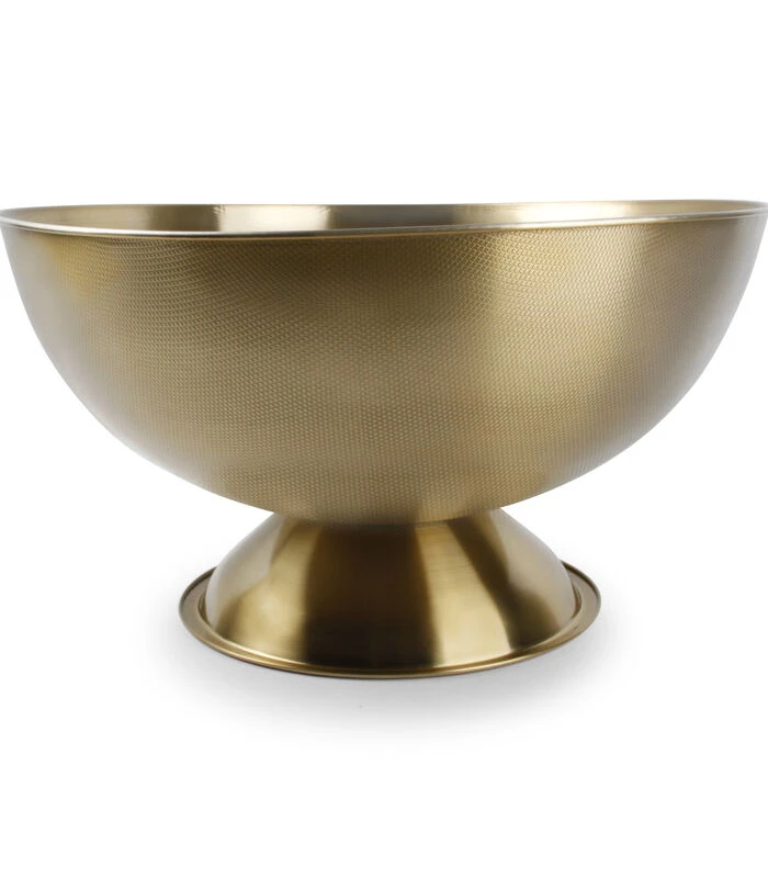 Deze Gouden champagnekoeler is geschikt om verschillende flessen champagne koud te houden. Het ijs zal in deze emmer van roestvrij staal niet snel wegsmelten zodat jouw favoriete dranken langer koel blijven. De combinatie van de Gouden kleur en de afwerking met structuur zorgt voor een extra touch aan jouw feesttafel.
