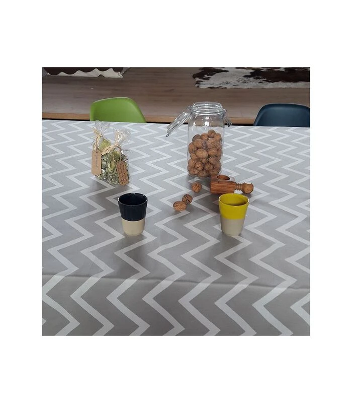 Veeg je tafelkleed na elke maaltijd schoon met een vochtige doek. U kunt ook azijn of bleekmiddel gebruiken om hardnekkige vlekken te verwijderen. In de machine wassen is af en toe toegestaan op 30°C zonder conditioner en zonder centrifugeren. Strijken is verplicht aan de achterkant (katoenkant) of aan de rechterkant met een persdoek of een vochtige theedoek.