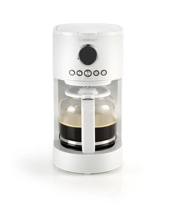 Dit eigentijdse Cuisinart koffiezetapparaat in mat warm witte met gepolijste details, zal prachtig staan in je keuken.
