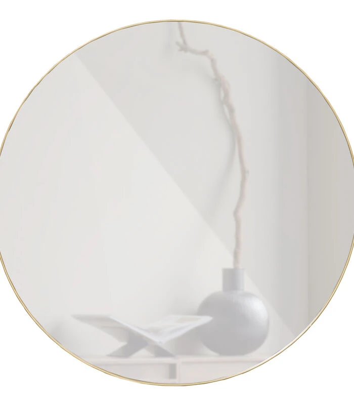 De spiegel heeft een HRP sheet metal rand [hot rolled sheet metal] en is slijtvast. De stalen rand heeft een matte, goudkleurige afwerking. De spiegel heeft een doorsnede van 80 cm, de rand is 4 mm dik en 5 cm diep. De spiegel weegt 9,5 kg. Het spiegelglas voldoet aan de Europese standaard.
