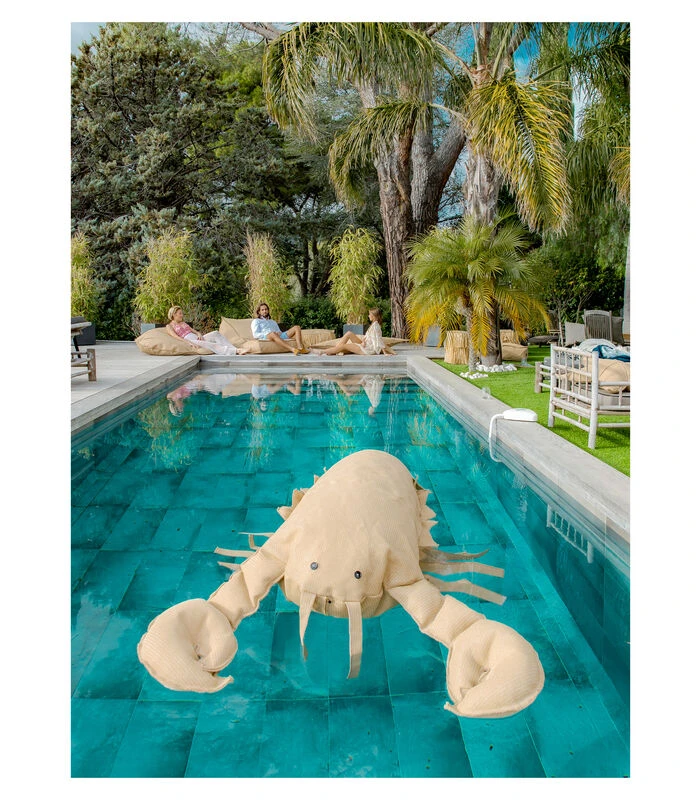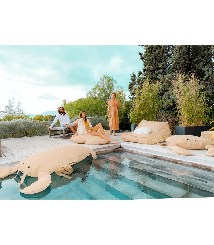 Drijvende XL-buitenpoef Kreeftvorm Raffia-effect