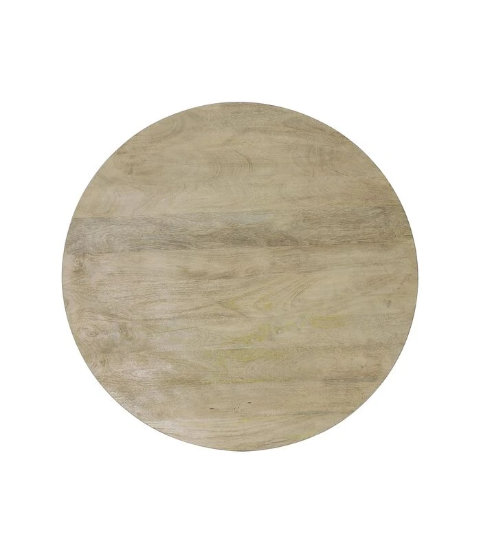 De eettafel is vaak een bron van gezelligheid. Aan deze ronde tafel kan iedereen aanschuiven en mee eten. De tafel past thuis in elk interieur en passend bij verschillende woonstijlen. Het blad is gemaakt van lichtbruin mango hout met een ruwe afwerking en de tafel heeft stevige zwart metalen poten. De metalen details in de tafelpoten zorgen voor een stoere en robuuste uitstraling. Bij deze tafel dienen de poten nog gemonteerd te worden, na levering.