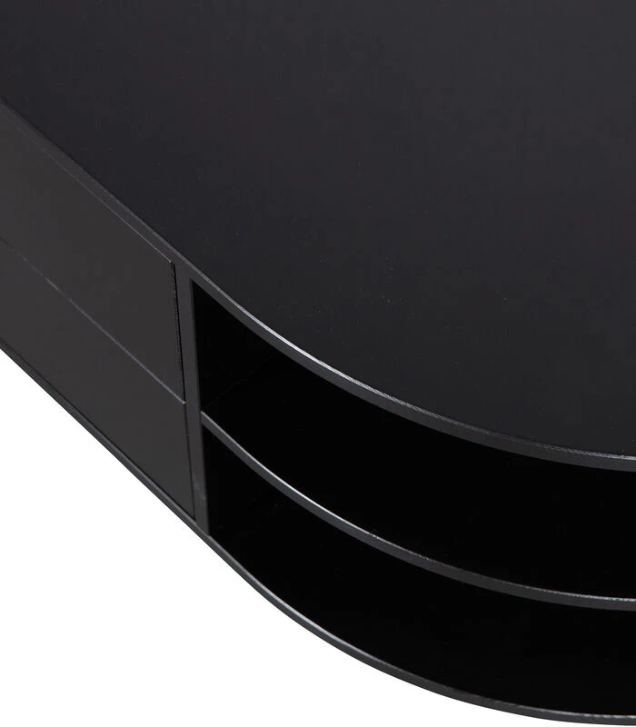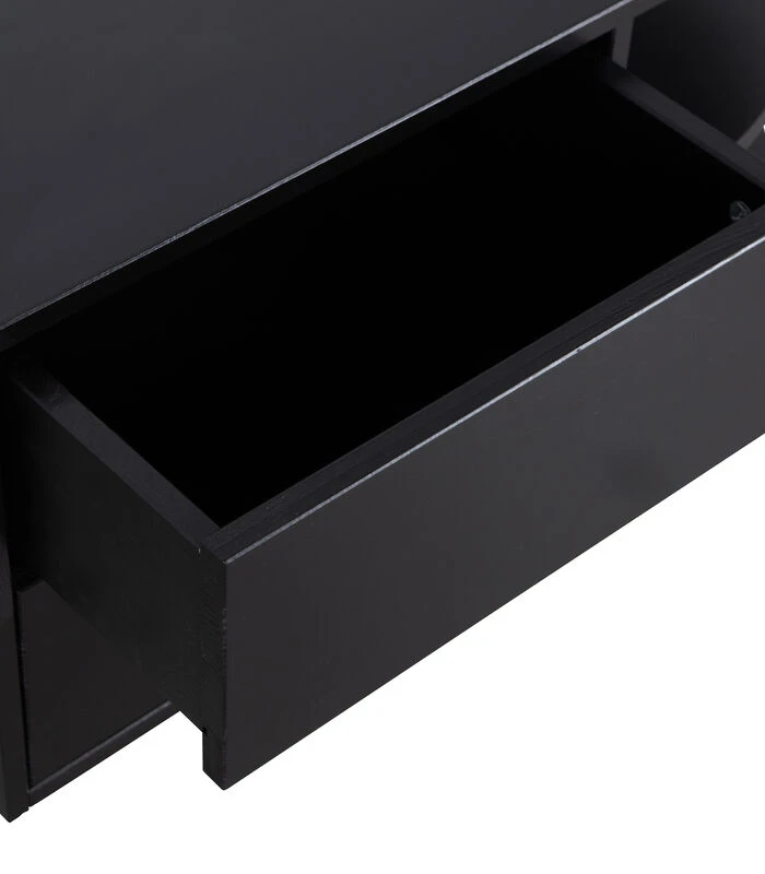 Het Finca tv meubel met rond element is een waar pronkstuk in de woonruimte. De open vakken bieden genoeg ruimte voor het presenteren van jouw mooiste woondecoratie. De twee laden houden nog eens een ruime opbergruimte uit het zicht. De onderrand van het tv meubel laat 7 cm ruimte over aan de voorzijde, hierdoor lijkt het meubel te zweven.