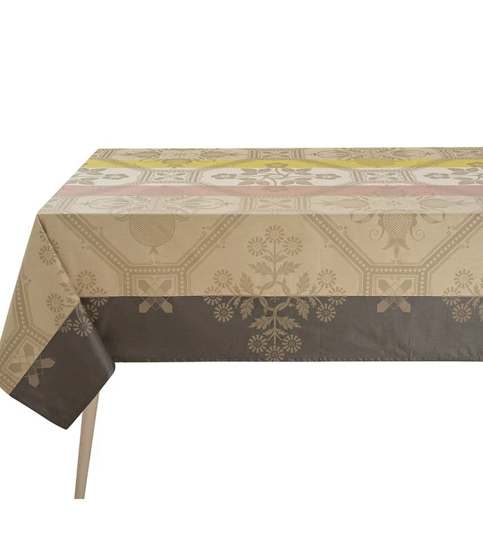 Voor uw dagelijkse familiemaaltijden, in de keuken of zelfs in de tuin, zal het Hacienda tafelkleed een warme en heldere toets brengen. De smeedijzeren ontwerpen, de ornamenten van de gevels en de geometrie van de Spaanse vloeren worden opnieuw bekeken en met elkaar verbonden door een spel van strepen.