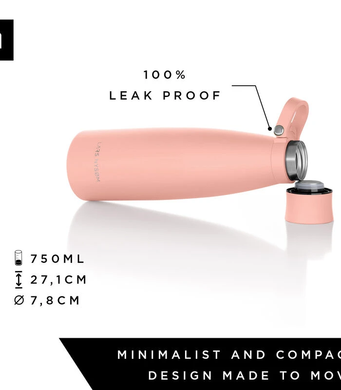 Met de metalen fles heb je een perfecte metgezel voor onderweg. De fles is 100% lekvrij en gemakkelijk te vullen. De drinkopening is perfect voor afgemeten slokjes zonder te morsen.