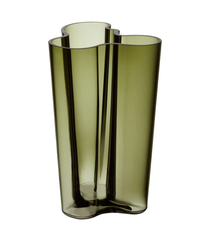 De asymmetrische golfvormen van designpionier Alvar Aalto werden beroemd tijdens de Wereldtentoonstelling van 1937 in Parijs. In de decennia die volgden, werd deze vorm een vast waarde in het Scandinavisch interieurdesign. Aalto haalde veel inspiratie uit het Finse landschap voor zijn ontwerpen, die zowel functioneel als sculpturaal zijn. De unieke glaslen vazen worden eerst mondgeblazen. Daarna worden ze in de Iittala–glasfabriek handmatig gesneden voordat ze diverse keren worden gepolijst. De iconische Aalto–vaas is een opvallende aanvulling voor elk interieur. Langstelige boeketten komen prachtig tot hun recht in deze grote vaas, terwijl de mosgroene kleur een natuurlijke toets brengt in elk woondecor. Een ideaal geschenk.