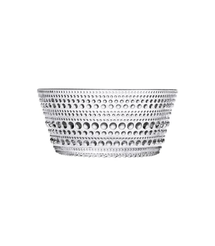 De Finse designlegende Oiva Toikka ontwikkelde de Kastehelmi–collectie tijdens zijn zoektocht naar een ontwerp om de zichtbare verbindingen in glazen te verbergen. Het baanbrekende resultaat was een opvallend patroon met cirkels van druppels op het glas die lijken op dauwdruppels in de ochtendzon. Kastehelmi (‘dauwdruppel’ in het Fins) speelt met licht waardoor de schoonheid van het glas uitbundig wordt weerkaatst. De geliefde Kastehelmi–collectie van Iittala bestaat uit een breed scala aan veelzijdige stukken die uitnodigen om aangeraakt te worden. De stukken zijn functioneel en decoratief tegelijk. De delicate maar duurzame Kastehelmi–schaal in helder glas is perfect voor een stevig ontbijt, snacks, bijgerechten of snoep. Verzamel een set. Een mooi geschenk voor een bruiloft, verjaardag, jubileum of housewarming. Geschikt voor de vaatwasser.