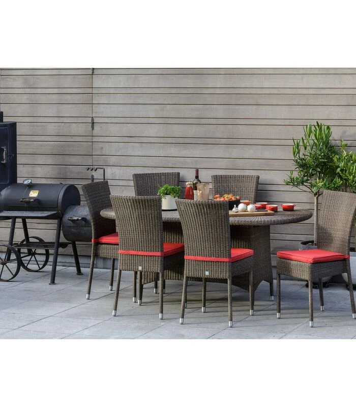 HDPE (hoge dichtheid polyethyleen) Kunstvezel is gemakkelijk te onderhouden en volledig weerbestendig. Het is gesponnen in een mengsel van 2 kleur op kleur kleuren om dit prachtige gevlekte effect te geven, zeer dicht bij een natuurlijke vlecht. De structuur is gemaakt van aluminium met poedercoating voor lichtheid. Stapelbaar, licht, gemakkelijk te onderhouden en zeer comfortabel, kan de ISABELLE outdoor resin stoel ook binnenshuis worden gebruikt.Afmetingen: hoogte 95 x breedte 44 x diepte 58, zitting 46 cm. Specialist in rotan sinds 1920, KOK MAISON biedt kwaliteitsmeubelen, comfortabel en bestendig, niet alleen door de keuze van de materialen maar ook door de nauwgezette zorg die aan elk detail van onze stukken wordt besteed.Fabricage: Indonesië Detail samenstelling: Structuur in epoxy–behandeld aluminium. Weven in hoge dichtheid polyethyleen Kunstvezel. Kussen : Polyetherschuim 30 kg/m3 bedekt met polyesterwatten voor de zitting, polyestervezel voor de rugleuningen. Stof : 100 % polypropyleen.