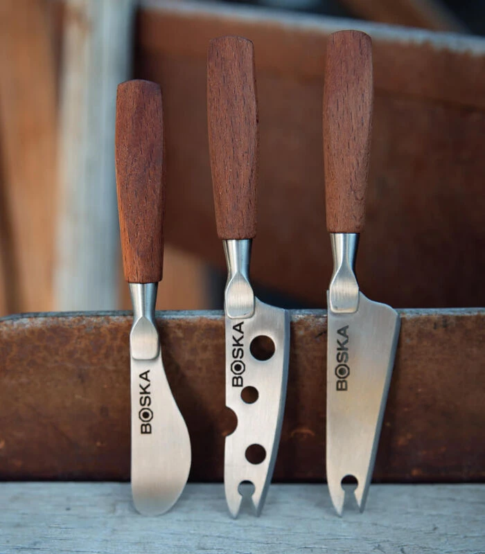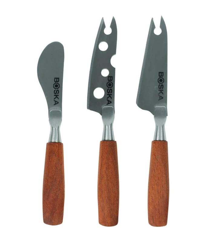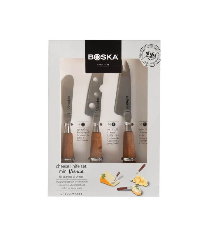 De Kaasmessenset Mini Vienna van BOSKA is perfect voor bij het serveren van een kaasplankje. De compacte messen hebben een stijlvol, gerookt beukenhouten handvat en zijn geschikt voor elk type kaas. Een handige cadeauset voor echte kaasliefhebbers.</