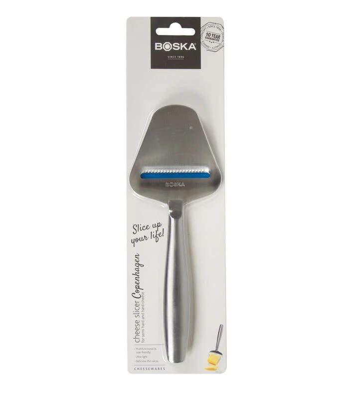 Kies je voor de Kaasschaaf Copenhagen van BOSKA? Dan kies je voor een strak design en jarenlang schaafplezier. Even scherp blijven: het snijblad van deze kaasschaaf blijft duurzaam scherp. De schaaf is uit één stuk RVS gemaakt en is daardoor ook nog eens