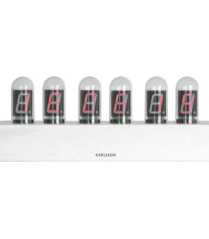 Voor de harde werkers onder ons! Deze digitale tafelklok van Karlsson bestaat uit kleine buisjes waarin rode lampjes zitten die de tijd weergeven. Het moderne design met een basis van hout maakt hem geschikt voor elke kantoorruimte. Maar vergis je niet Karlsson klok Cathode is eigenlijk ook op elk dressoir of nachtkastje een bijzondere eyecatcher. Karlsson klokken en wekkers zijn wereldwijd favoriet.