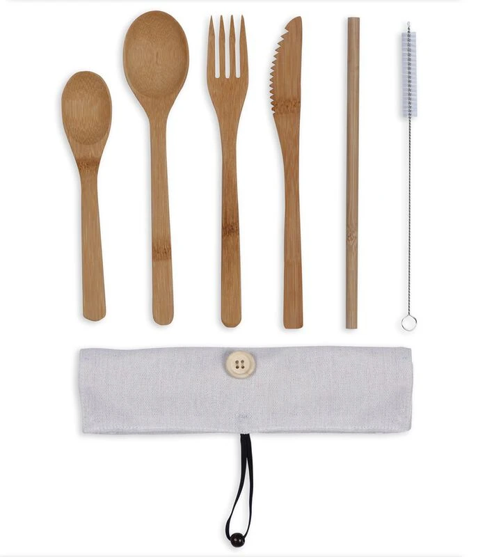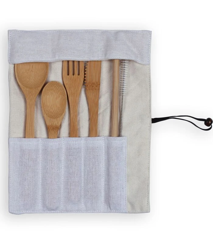 Bevat: 1 mes, 1 vork, 1 lepel, 1 theelepel, 1 rietje en 1 borstel