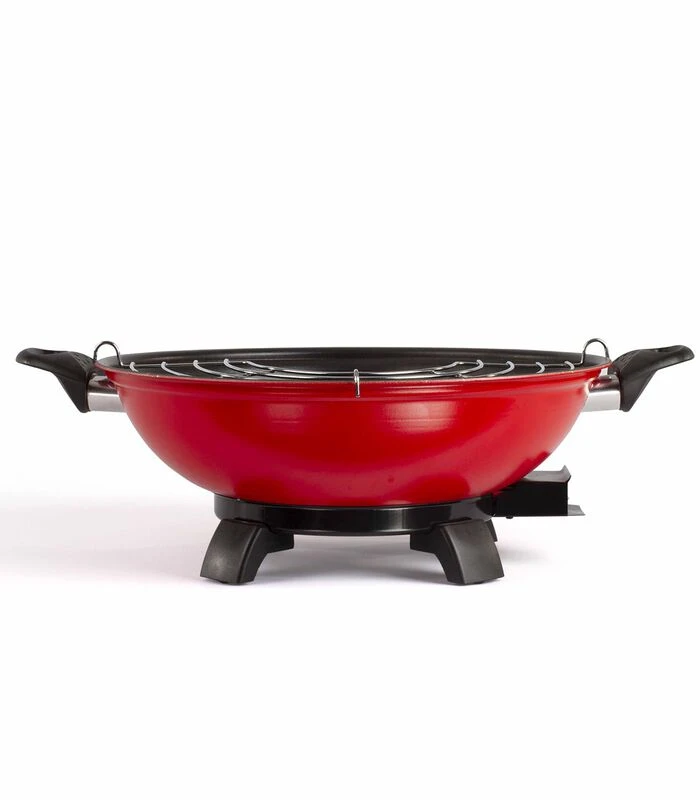 Elektrische wok. Anti–aanbaklaag. Capaciteit 4 l 33,5 cm. Regelbare en verwijderbare thermostaat. Gehard glazen deksel met stoomventilatie. Bamboespatel en roestvrijstalen stoomrek worden meegeleverd.
