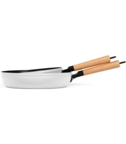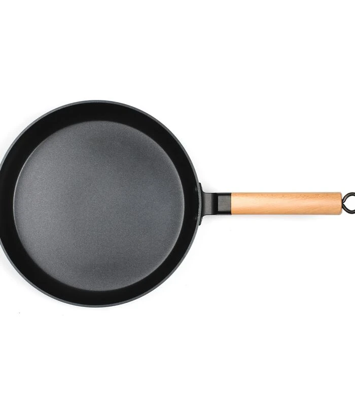 Antiaanbaklaag 24 cm en 28 cm. Echte beuken houten handgrepen. Geschikt voor alle types oven waaronder inductie.