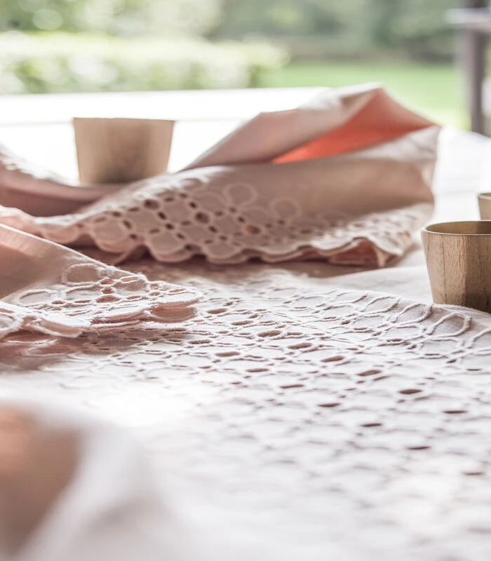 Linnen geweven en geborduurd in Frankrijk.