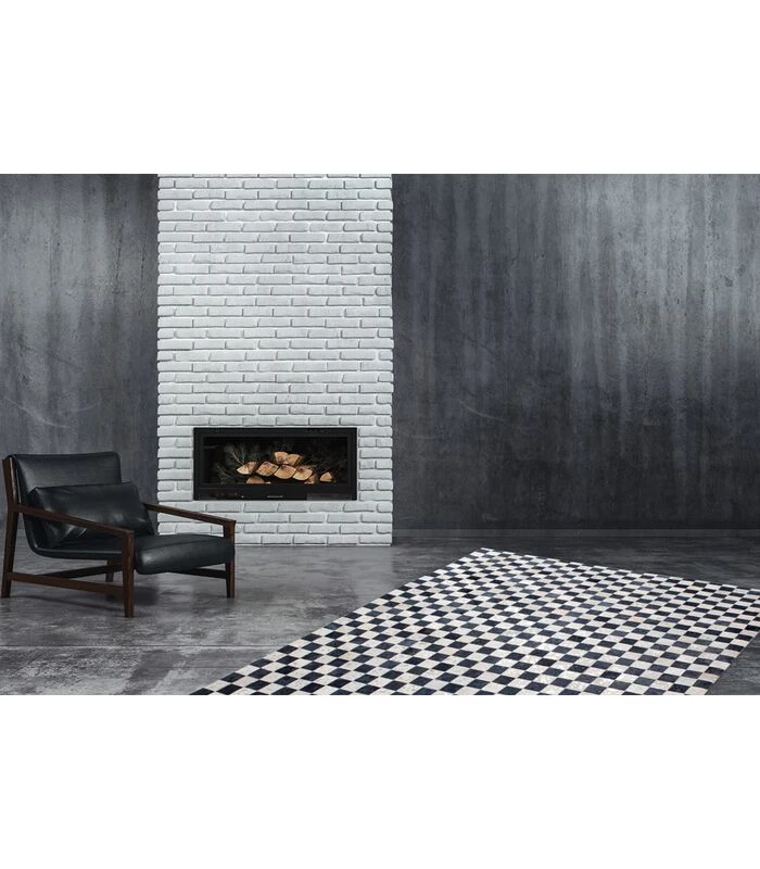 Er zijn geen identieke dierenhuiden. Elk van deze leren vloerkleden is uniek door de natuurlijke variaties in maat, kleur, patroon en structuur. De unieke stukken worden aangevuld door het metalen decor in felle kleuren, goud of zilver.
