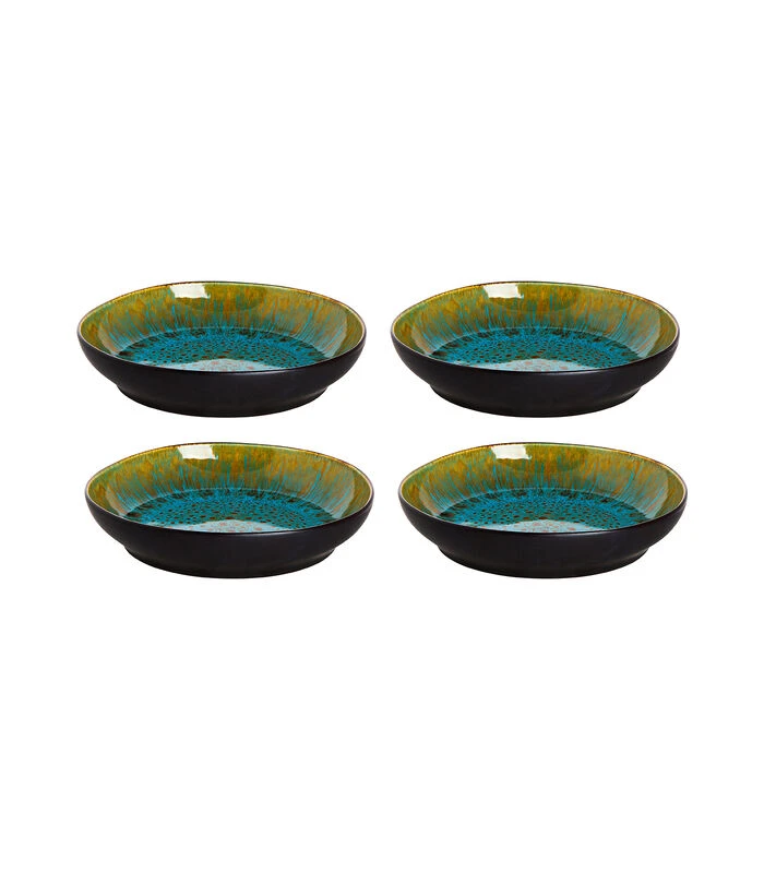 Palmer Bord Diep Lotus 21 Cm Turquoise Zwart Stoneware 4 Stuk(s)