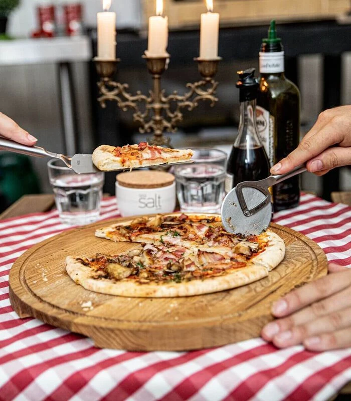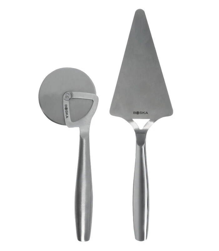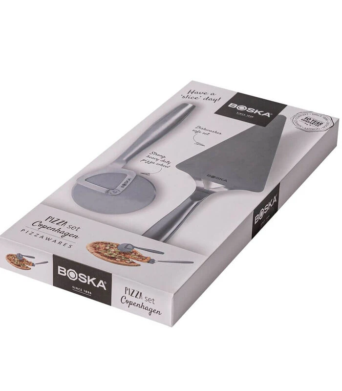 Snijd en serveer de lekkerste pizza’s met de Pizzaset Copenhagen van BOSKA. Deze set bevat een pizzasnijder en spatel van een hoge kwaliteit roestvrijstaal. De pizzaroller en spatel zijn heerlijk licht van gewicht en samen met het ergonomische handvat zor