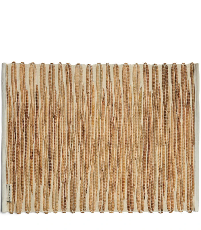 De Nusa Dua–placemat rol je eenvoudig op en de placemat is daardoor makkelijk en compact op te bergen. De flexibele strengen bananenblad waarvan de placemat is gemaakt, worden bij elkaar gehouden door stevig wit katoen.