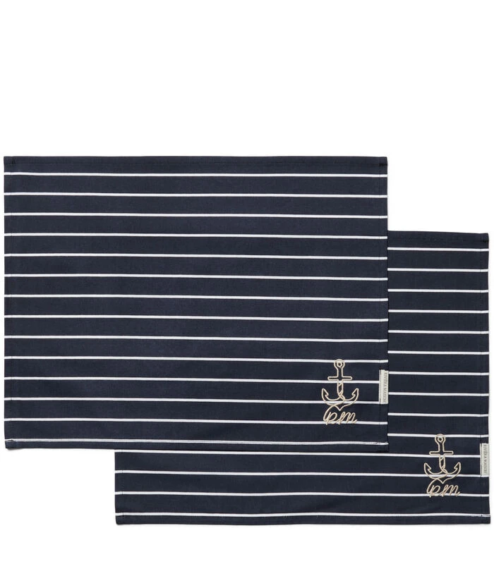 Placemats Set Katoen, Streep Met Anker – Classic Anchor – Donkerblauw – 2 Stuks