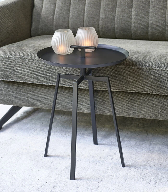 De Ponza End Table is de ideale bijzettafel voor een kopje koffie of een klein hapje. De tafel heeft een diameter van 40 cm en is gemaakt van modern zwart ijzer. Het tafelblad heeft een licht opstaande rand. Boven op de bijzettafel zit een praktisch handvat, waarmee je de tafel eenvoudig verplaatst.