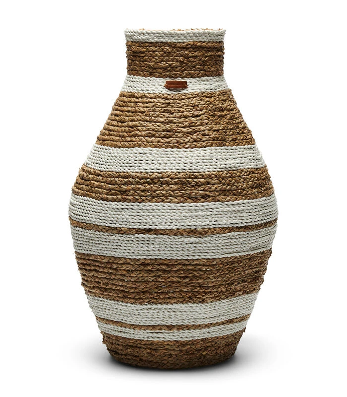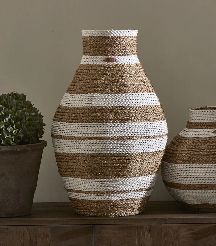 Rieten Vaas, Rond Met Streep – Emelisse – Bruin / Wit – Maat L