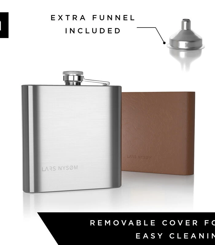 De bijgeleverde roestvrijstalen trechter is van hoge kwaliteit en erg praktisch. De schroefdop is robuust en 100% lekvrij. De heupflacon is compact, licht en past in bijna elke zak (12,5 x 10 cm).