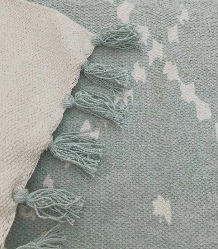 Dit mooie, etnisch geïnspireerde grafische vloerkleed, versierd met een zachte, rustgevende kleur, zal de kinder– en babykamer opfleuren.