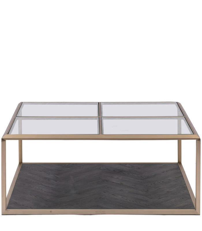 De Stanton salontafel is een chique, vierkante coffee table gemaakt van roestvrij staal in softgold. Het tafelblad is gemaakt van gehard glas. De bodem van de tafel is gemaakt van donker eikenhout dat is ingelegd in een visgraatpatroon. Een echte eyecatcher in je interieur! In de Stanton–serie is ook een end table verkrijgbaar.