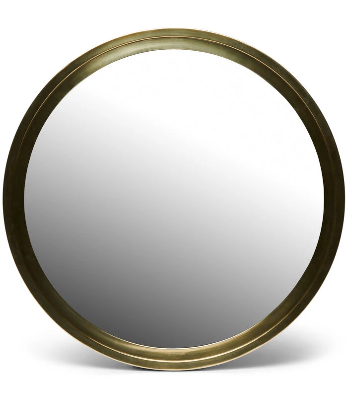 De RM Sa Caleta Metal Mirror is een ronde spiegel met een ronde lijst die gemaakt is van goudkleurig aluminium. De tint soft gold geeft de industriële wandspiegel een warme uitstraling. Onder in het frame is ‘Rivièra Maison’ gegraveerd.