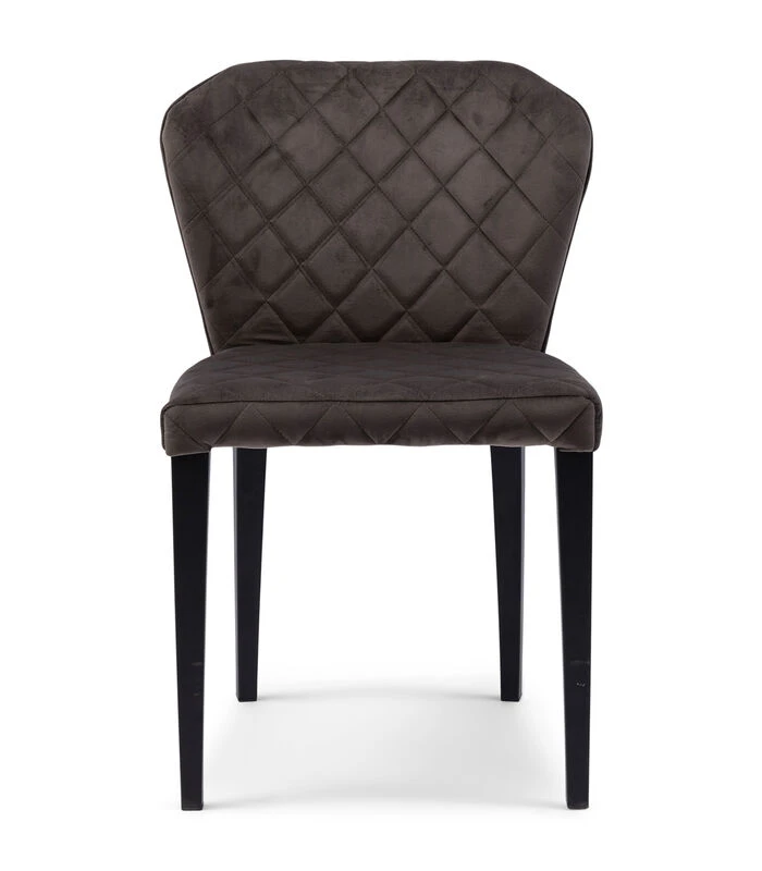 Modern en comfortabel gaan heel goed samen in deze Isabelle eetkamerstoel. Zacht velours voor de luxe uitstraling, een enigszins rechte rug in hoekige vorm. De poten van de stoel zijn van zwart gemoffeld metaal, eigentijds en stevig. Je kunt kiezen uit een aantal kleuren.