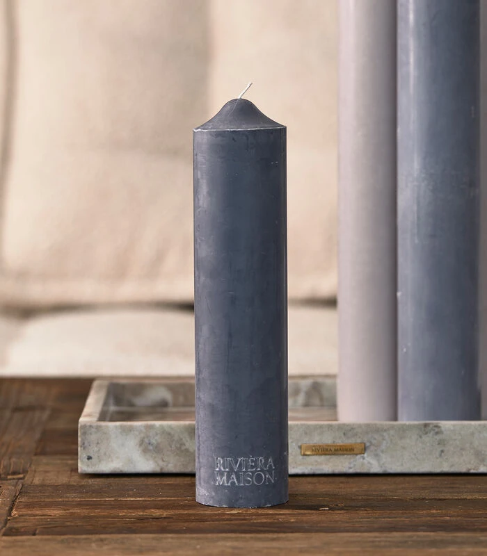 De RM Pilar Candle Rustic Blue is een bijzonder hoge stompkaars. De kaars in rustiek blauw is namelijk 7 centimeter breed en 30 centimeter hoog. Hierdoor heb je er ook langer plezier van. Onderin de blauwe stompkaars is onze naam ‘Rivièra Maison’ gegraveerd.