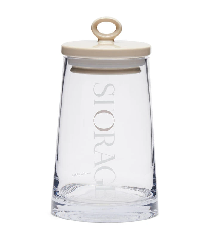 Wow, wat een plaatje is deze voorraadpot RM Loft maat S. De voorraadpot is gemaakt van taps toelopend, helder glas, met daarop een ronde deksel met een rond oog erop en een praktische siliconen sluitring. Het deksel is gemaakt van keramiek en is geverfd in een lichte taupe kleur. Verkrijgbaar in verschillende formaten.
