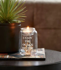 Waxinelichthouder Glas, Theelichthouder Streep – Santa Monica – Wit