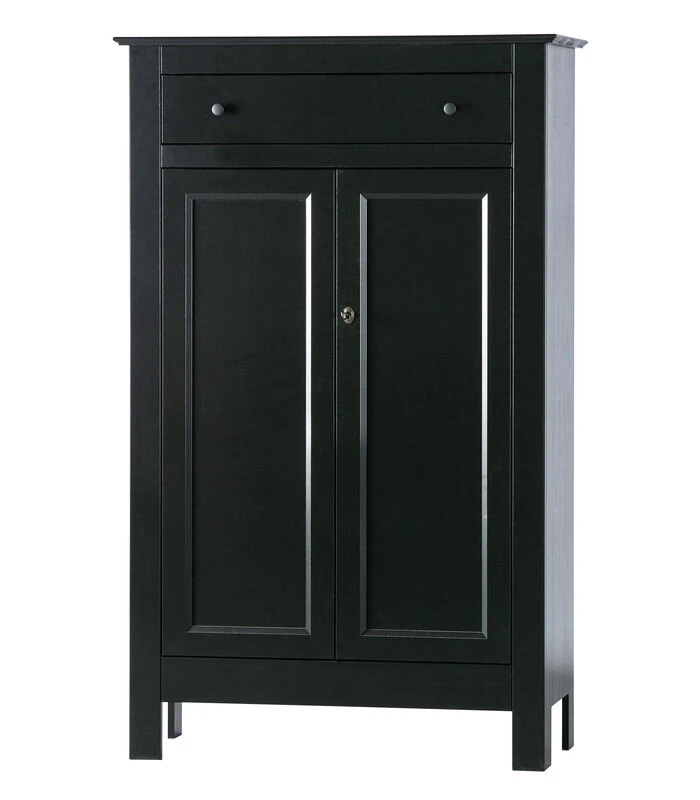 Eva is een tijdloze, klassieke brocante meidenkast uit de collectie van het merk WOOOD. De kast is vervaardigd uit grenenhout en heeft een stoere zwarte finish gekregen. Het interieur van deze kast is gemaakt van gelamineerd spaanplaat en de handige lade bovenin, met 2 witte porseleinen knoppen, is voorzien van solide metalen ladegeleiders. De binnenkant van de kast is ingericht met 3 brede legplanken. De twee deuren in de kast zijn voorzien van een slot en sleutel. Door de combinatie van klassieke elementen met een stoere zwarte finish is deze Eva meidenkast prima geschikt voor meerdere interieurstijlen. De legplanken in de kast hebben een breedte van 88 cm, een diepte van 35 cm en de ruimte tussen de onderste legplanken bedraagt 34 cm. Voor de bovenste legplank is deze afstand 38 cm. Artikelkenmerken