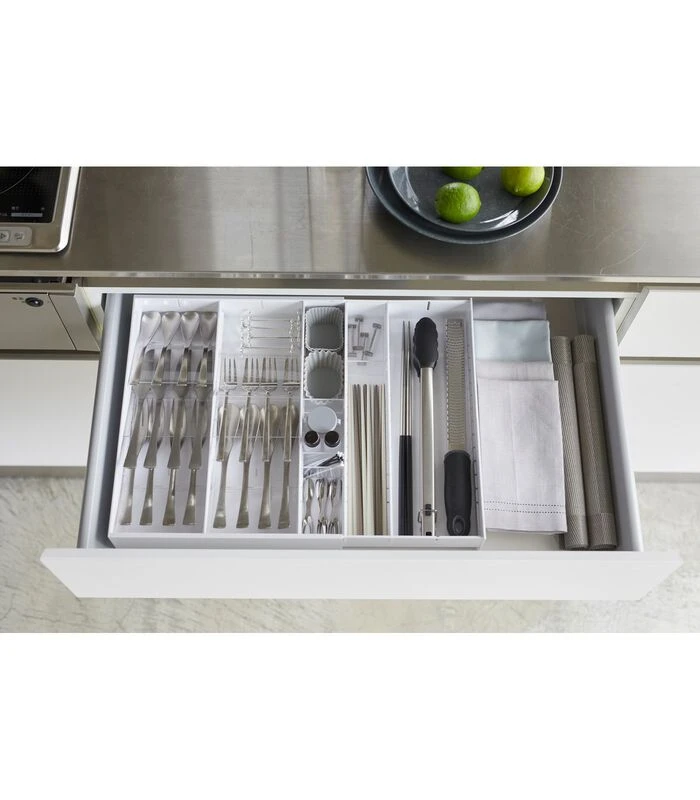 Yamazaki Extendable Diagonal Cutlery Tray – Tower – White