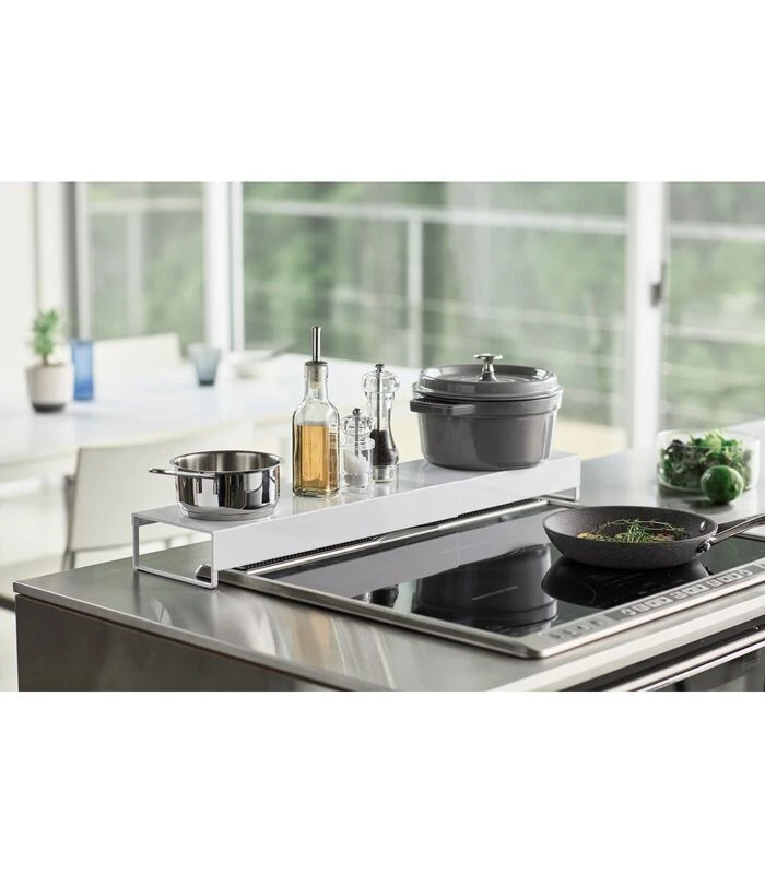 Deze slimme ventilatiekap van Yamazaki beschermt je afzuigkap tegen oliespatten en kookresten. Door het stevige materiaal zet je potten en pannen tijdelijk naast de kookplaat. Hij is uitbreidbaar, wat betekent dat je hem perfect kunt aanpassen aan jouw wensen. Een strak en modern design dat een mooie aanvulling is op elk aanrecht.