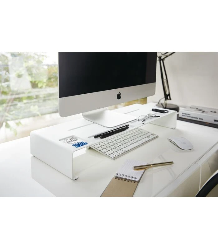Deze pc monitorstandaard van Yamazaki is eenvoudig en stijlvol. Buiten je beeldscherm kun je er ook je pennen, paperclips en andere kantoorbenodigheden bewaren. Gemaakt van staal en ontworpen in Japan.
