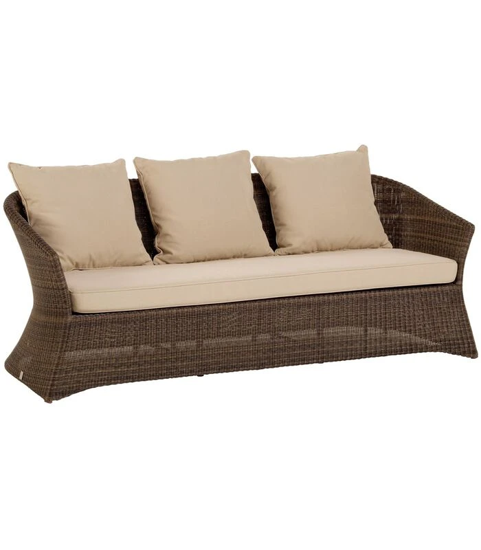 Onderhoudsgemak en totale weerbestendigheid, onze HDPE (hoge dichtheid polyethyleen)resinis gesponnen in een mix van 2 kleur op kleure kleuren om dat mooie, natuurlijk ogende, china–achtige vlechteffect te geven. De structuur is gemaakt van aluminium met poedercoating voor extra duurzaamheid. Hier gaat het om een 3–zits buitenbank in Zénith.Alle afmetingen: hoogte 71 x breedte 188 x diepte 70, zitting 42 cm. Geleverd met kussen in 100% polypropyleen stof, behandeld tegen UV en schimmel. Afdekbare kussens gevuld met polyetherschuim 30 kg/m3 voor de zitting en polyesther vezel voor de rugleuningen. KOK MAISON, rotanspecialist sinds 1920, biedt kwaliteitsmeubelen, comfortabel en bestendig, niet alleen door de keuze van de materialen maar ook door de zorgvuldigheid waarmee elk detail van onze stukken wordt behandeld. Maakwijze: Ondeugdelijk: Std./pOmbouw: Structuur in behandeld aluminium. Weven in hoge dichtheid polyethyleen Kunstvezel. Kussen: 30 kg/m3 polyurethaanschuim bedekt met polyesterwatten voor de zitting, polyestervezel voor de rugleuningen. Stof : 100% polypropyleen.