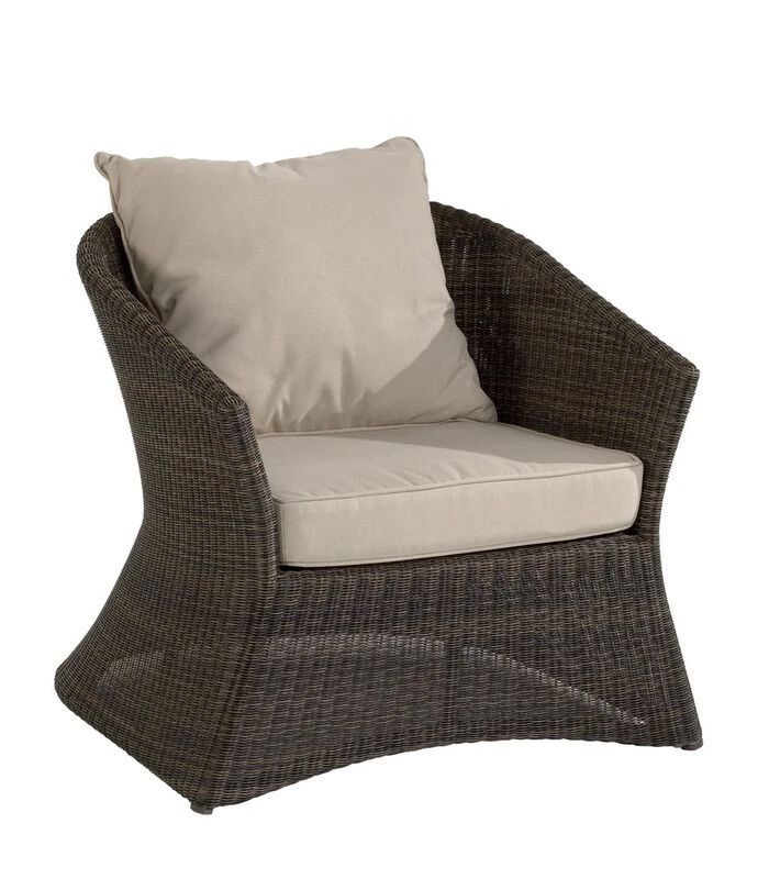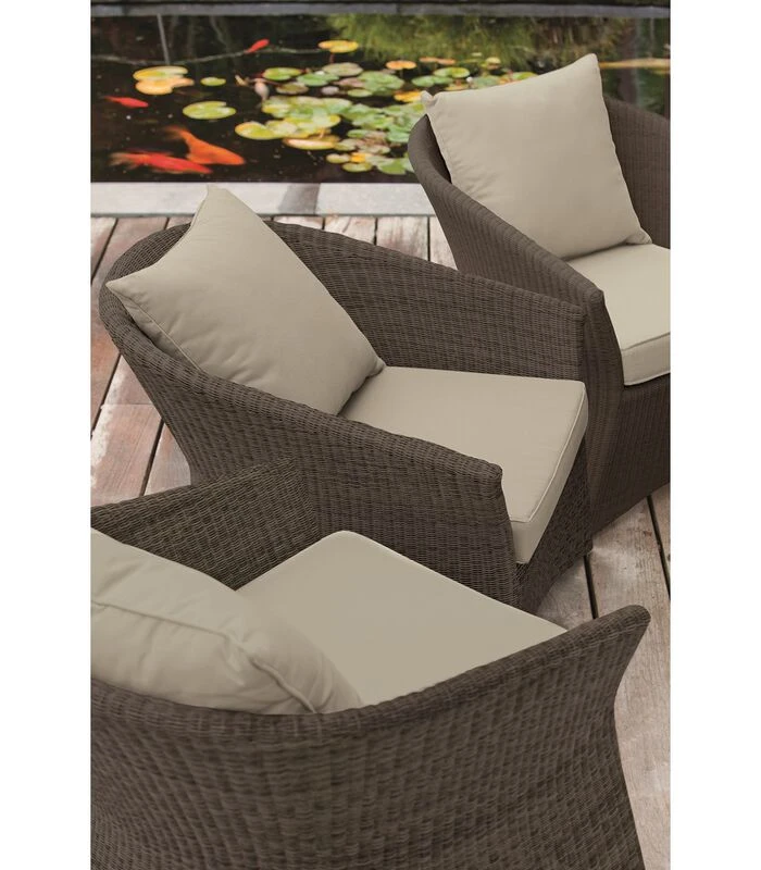 Gemakkelijk te onderhouden en volledig bestand tegen beschadiging, onze resin is gesponnen in een mengsel van 2 kleur op kleur kleuren om dit prachtige kin effect te geven, zeer dicht bij een natuurlijke vlecht. De structuur is gemaakt van aluminium met poedercoating voor extra duurzaamheid. Hier, de outdoor Poivre tuinstoel Zénith. Totale afmetingen: hoogte 71 x breedte 76 x diepte 80, zitting 42 cm. Kussens bekleed met polyurethaanschuim 30kg/m3 voor de zitting en polyesthervezel voor de rugleuning. KOK MAISON is sinds 1920 gespecialiseerd in rotan en biedt kwaliteitsmeubelen die comfortabel en duurzaam zijn, niet alleen door de keuze van de materialen maar ook door de nauwgezette zorg die aan elk detail van onze stukken wordt besteed.Fabricage: Indonesië. Gedetailleerde samenstelling: Structuur in behandeld aluminium; poxy. Geweven in polyethyleenKunstvezel met hoge dichtheid. Kussen: polyethyleenschuim 30 kg/m3 bedekt met polyesterwatten voor de zitting, polyestervezel voor de rugleuningen. Stof 100% polypropyleen.